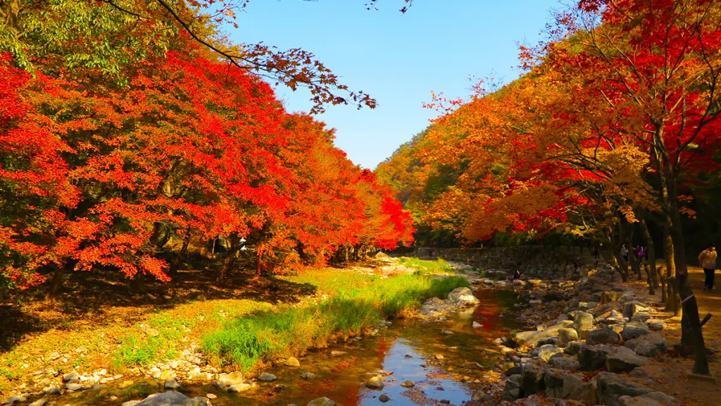 가을이 되면 대한민국은 온통 붉은빛으로 물들죠. 하지만 그 아름다운 단풍을 보려면 으레 험한 산길을 오르는 수고를 감내해야 한다고 생각하셨을 거예요. 그런데 순창 강천산은 그런 고정관념을 완전히 뒤엎어 버린 단풍명소랍니다! 이곳은 10월 말이면 강렬한 애기단풍이 5km에 달하는 평지 산책로를 붉은 카펫처럼 수놓아요. 정말 믿기지 않을 정도로 완벽한 평지라서, 남녀노소 누구나 편안하게 이 아름다움을 즐길 수 있어요.