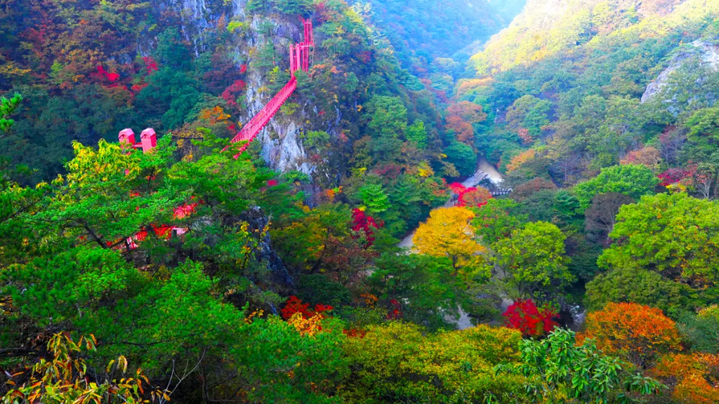 짜릿한 현수교에서 만나는 단풍 파노라마